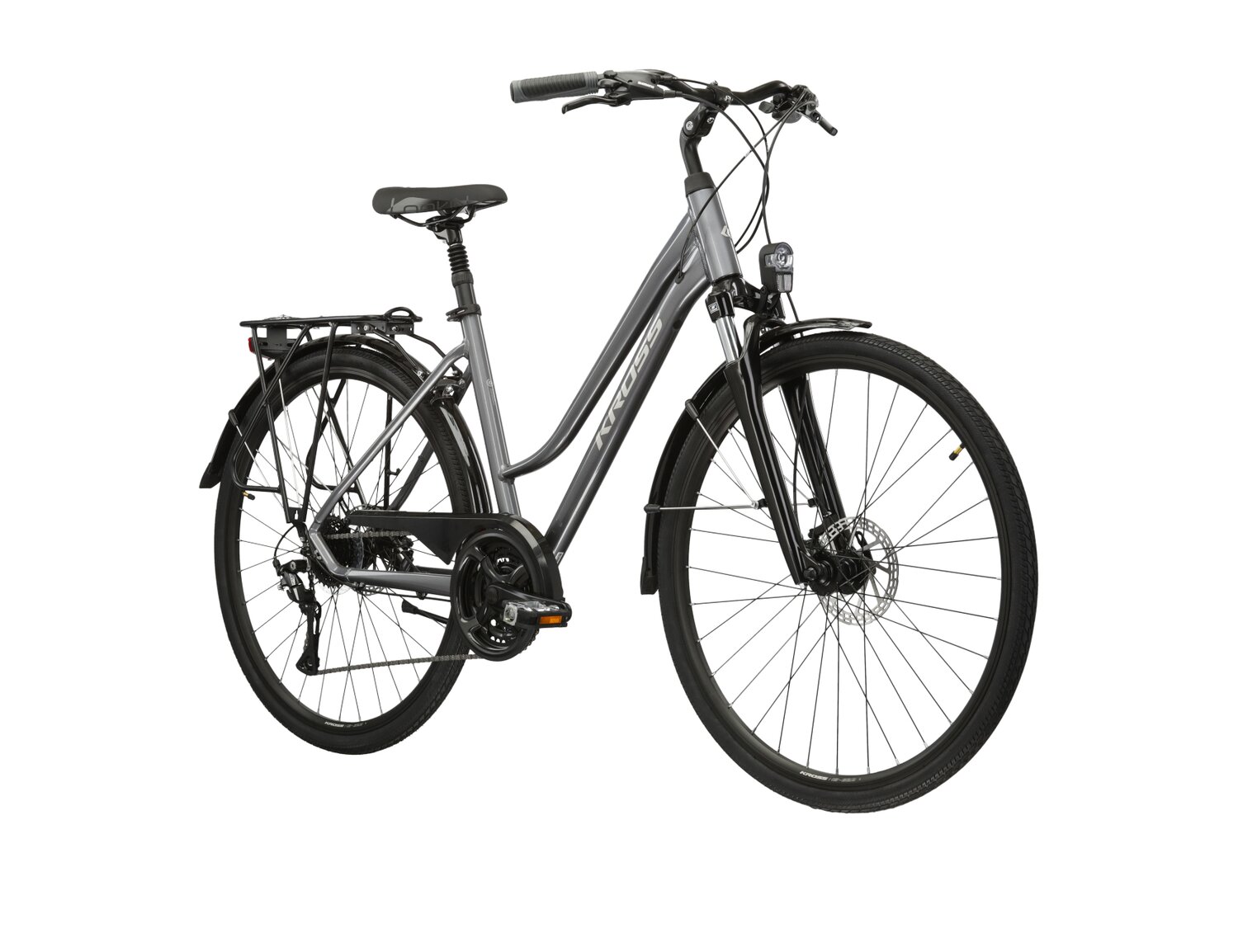 KROSS Trans 4.0 został zaprojektowany z myślą o wygodzie użytkowników. Siodełko Selle Royal, osadzone na amortyzowanej sztycy, zapewnia komfort nawet podczas długich tras. Dodatkowo, zintegrowane oświetlenie zwiększa bezpieczeństwo jazdy po zmroku. Wbudowany tylny bagażnik z wytrzymałą konstrukcją umożliwia przewożenie cięższych ładunków do 25 kg, a system pełnych błotników skutecznie chroni przed zabrudzeniami.